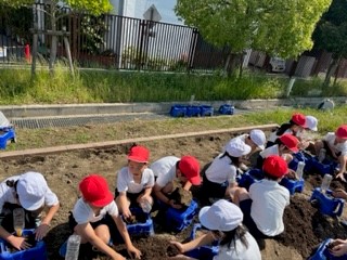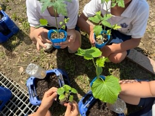 「プチトマト」「オクラ」「キュウリ」の苗を植えました。大きく育ってほしいです。一生懸命にお世話します。