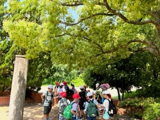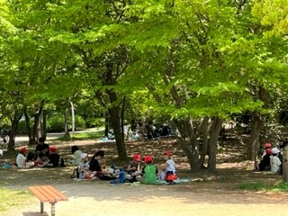 春の遠足とは言えない夏日となりました。午前中が、たて割り班でオリエンテーリングをしました。4つのポイントで課題があり、得点を競いました。とても盛り上がりました。
