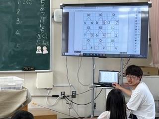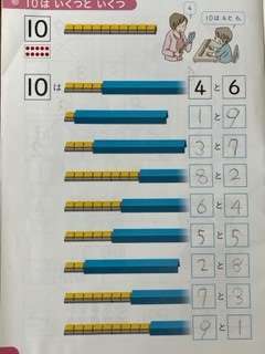 1年の算数、「10はいくつといくつ」です。「10は6と○つ」「?」子どもたちは、しっかり考えて発表ができていました。
