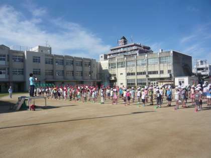 秋晴れの朝、爽やかに児童朝会を行うことができました。
