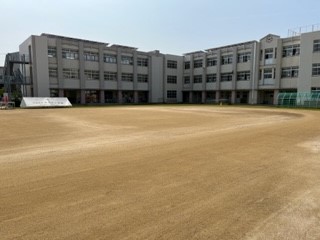 週末に運動場のコンデションを整えるために、業者に依頼して、運動場に「にがり」をまき、運動場整備をしていただきました。運動会当日、子どもたちには、このすばらしい運動場で頑張ってほしいと願います。
