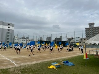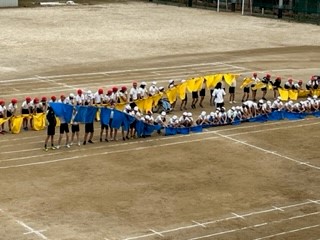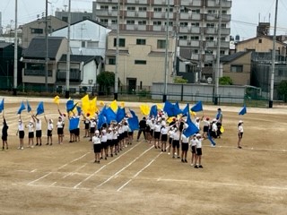 高学年運動会練習の演技「フラッグ」も、見せ場がやってきています。体形移動やウエーブなど、とてもきれいにそろってきました。