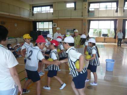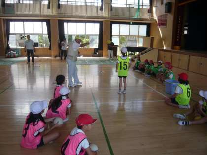 早速、6チームに分かれた4年生、3チームずつ2コートでゲームが始まりました。