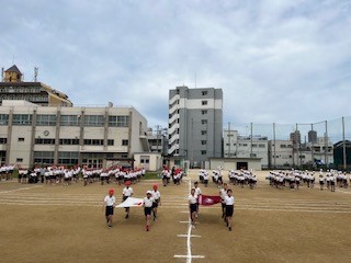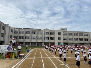 今日は、運動会全体練習の様子です。「開閉会式」の練習をしました。来週のお天気が少し心配ですが、今日が最後の練習という気持ちで、集中して頑張りました。