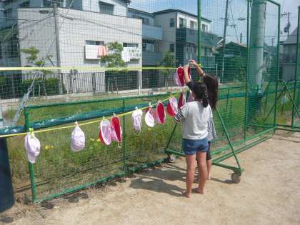 洗濯したのは、汗がしみこんでいる紅白帽子でした。