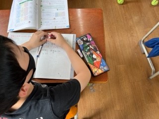 3年の算数の様子です。「十の位が0の時の計算のし方を考えよう」をめあてに考えていきました。「十のくらいは、10が0こなので、・・・」一つ一つ、くり下がりの学習を思い出して、答えを導き出していました。