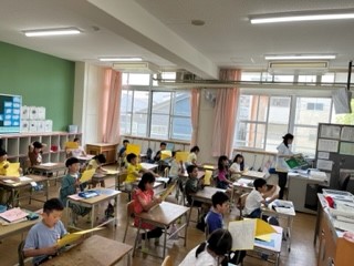 校内に、元気な歌声が聞こえてきました。1年生の教室では、校歌の歌詞カードをしっかりみて、元気に校歌を歌っていました。運動会でも校歌を歌います。これから、あらゆる行事、場面で歌います。頑張っておぼえてほしいですね。