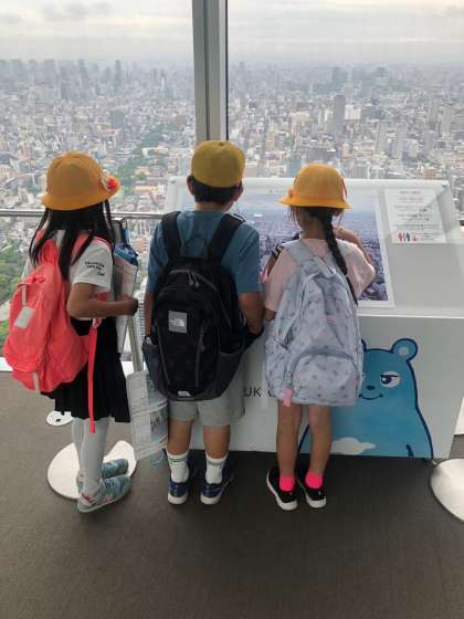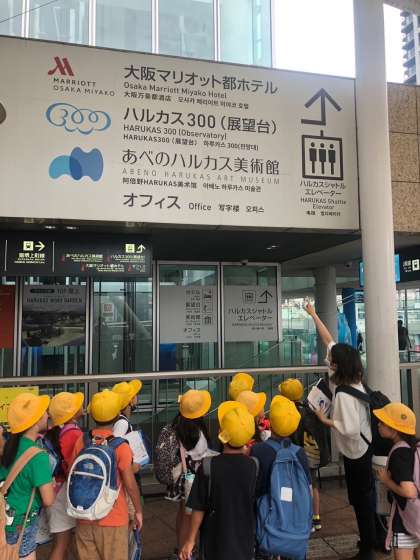 12日(月)、3年生は社会科の学習であべのハルカスの展望台に行きました。天候が心配でしたが、約300mの高さから子ども達は大阪の街を東西南北、遠方まで見渡すことができました。帰りは大阪環状線を一周。車窓から見える景色や発車メロディなど、自分たちの目で、耳で大阪市をじっくり観察しました。