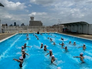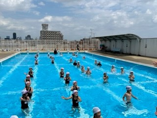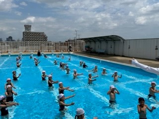 2年生も今日がプール開きでした。お天気も良く、気持ちよく水慣れができました。みんなの笑顔がはじけました。