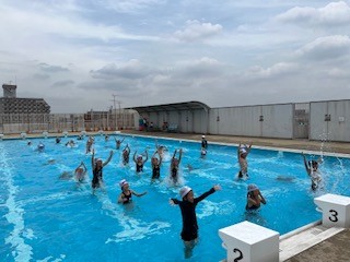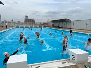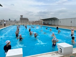 お天気も良く、絶好のプール日和でした。先生のポーズをまねたり、ペアで楽しく水慣れを楽しむことができました。