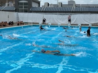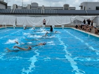 今週から7月に入りました。晴れの月曜日、高学年児童は、2時間目にプールに入りました。今日は、クロール、平泳ぎを、細かく確認しながら練習をしました。