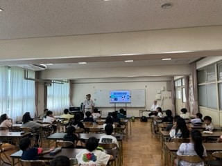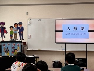 5年生の非行防止教室の様子です。少年サポートセンターの講師を招き、誘惑に負けない強い心を持つことであるとか、危険な場面に遭遇した場合の対処法など、具体的に指導していただきました。