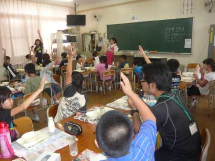 給食が終わる頃にソムセンニムから韓国と日本に関わるクイズがありました。