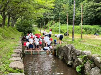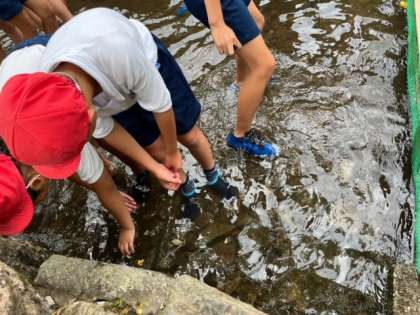 子どもたちは、川の水が冷たくて、まず、大はしゃぎ