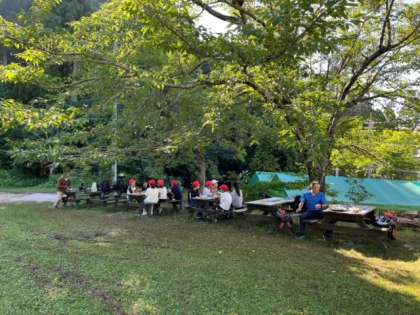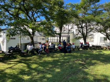 自分で作った朝食。青空の下で食べるのは格別ですね。