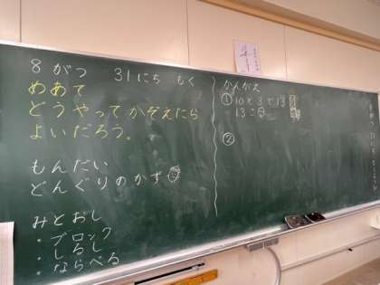 1年生の算数です。10より大きいかずを数えていきます。「どうやってかんがえたらいいのだろう?」いろんな考えが出ました。ブロックを並べる。しるしをつける。そして、まとまりで考えるなど、自分たちで考える楽しみを実感していました。
