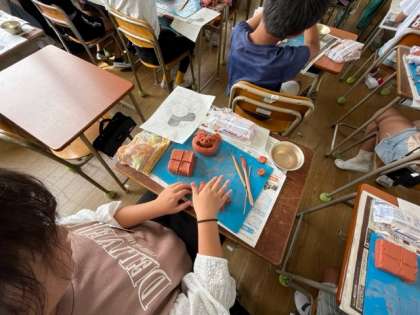 5年の図工の時間。今日は、世界に一つの、オリジナルシーサーづくりをしました。一人ひとり、個性的な、すばらしいシーサーができていました。