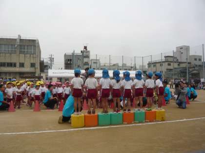 9時より、東桃谷幼児の園の運動会が東桃谷小学校校庭で行われています。
