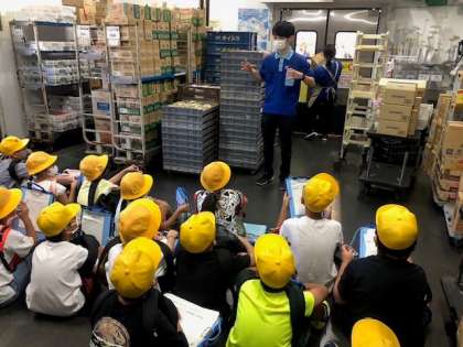 3年の社会科「店ではたらく人々」の学習です。今日は、地域のお店巡りの社会見学です。スーパーの万代では、スタッフの方に、お店のひみつをたくさん教わりました。また、バックヤードも見学させていただきました。