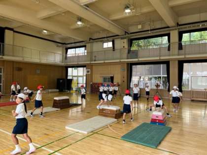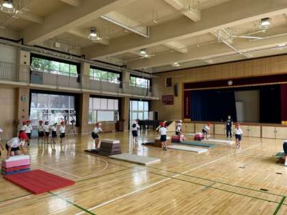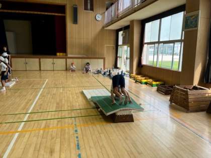 2年体育「とびばこ」です。先日、出前授業で教えていただいたことを思い出し、楽しく思い切って活動ができていました。