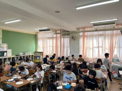 5年図工の学習の様子です。今日から、オリジナルデザインの「太陽の顔」づくりが始まりました。