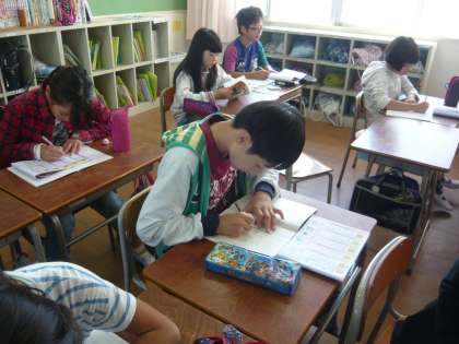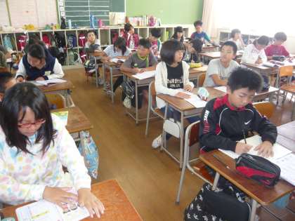 課題が早くできた児童は、自習をしています。基礎学力・自学自習を身につけてほしいです。