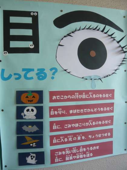 ・保健だより10月号に掲載の「目」の 大きな掲示物です。