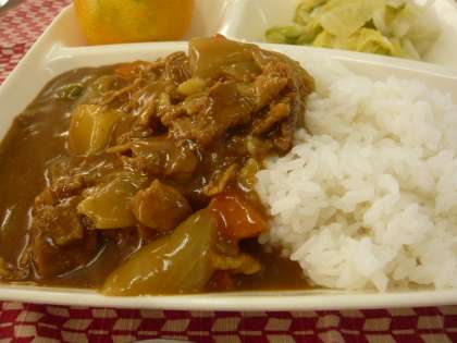 小麦粉を使ったカレールーと比べると米粉のルーは、あっさり、さらっとしている感じです。でも、最近は、献立表を見ないと米粉のルーのカレーライスとはわからなくなってきています。