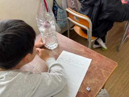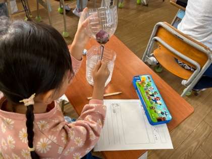自分のヒヤシンスの根がどれだけ成長しているか、かんさつをしました。