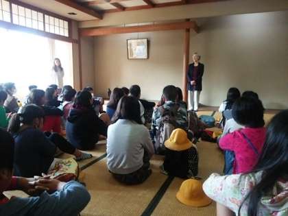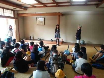 宿舎のおかみさんのお話をしっかりと聞いていました。
