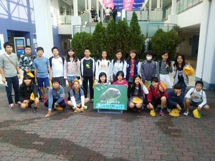 鳥羽水族館に着いて、早速記念写真撮影です。