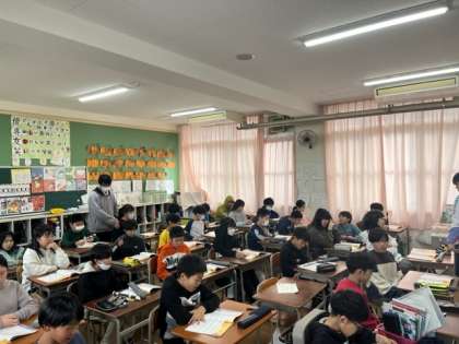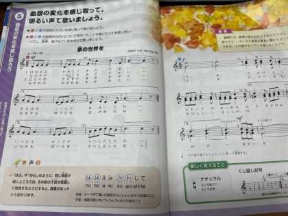 5年の音楽の様子。曲想の変化を感じ取って、明るい声で歌います。