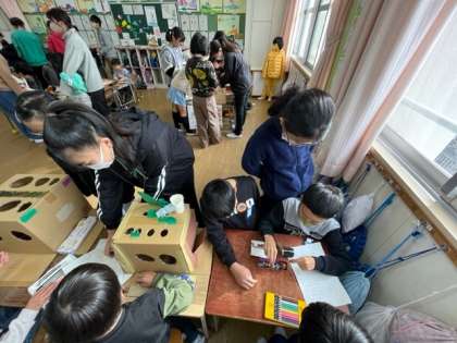 1年生と6年生との交流の様子です。今日は、先日紹介したどんぐりやさんへ、6年生を招待して、楽しい時間をすごしました。1年生は、張り切って、パワーアップしたお店を紹介していました。6年生は、やさしく、「ありがとう」と声をかけていました。ほのぼのした時間が流れていました。