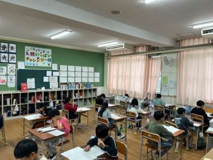 今日から3年生以上で、学力経年調査が実施されます。今日の科目は「国語」と「社会」でした。