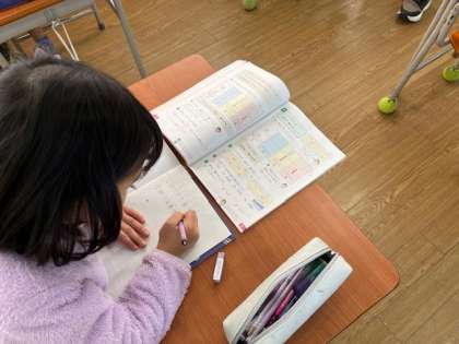 2年の算数の学習の様子です。位を読み間違えないように、じっくり考えて取り組んでいました。