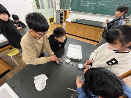 5年の理科の学習の様子です。「ものが水に溶ける量には限りがあるのだろうか?」食塩とミョウバンについて調べてみました。
