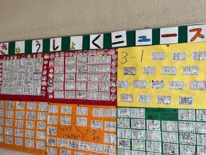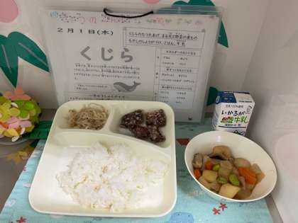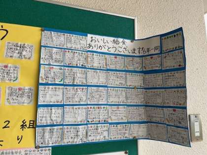 「いつもおいしい給食をつくってくれてありがとう!」子どもたちから、調理員さんたちへの感謝のメッセージをお渡ししました。