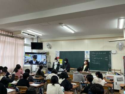 6年生の英語学習の様子です。本日は、桃谷中学校の2年生生徒とオンラインでの英語学習交流行いました。英語で自己紹介など、緊張しながらも頑張って伝えていました。