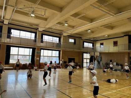 4年の体育の様子です。今日は、「後ろ跳び」を練習していました。
