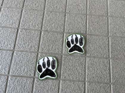 今週は、ノーダッシュ週間です。ろうか階段は右側を歩きましょう。いろいろな動物の足跡が、今回の取組の工夫、おもしろいところです。