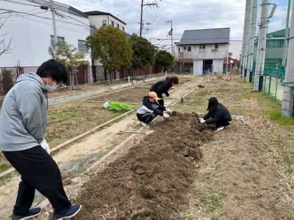 先生たちの仕事は、こんな事もあります。学習園の整備をしました。