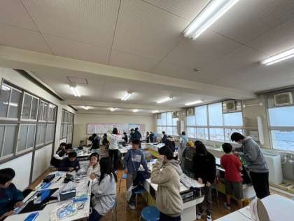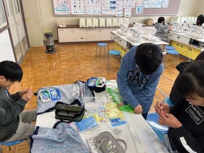 5年生の家庭科、「エプロン作り」の様子です。集中して頑張っていましたよ。