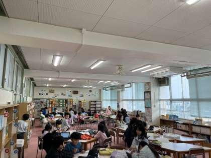 金曜日は、「図書館一日あいてんDay」の日です。図書室をのぞくと、2年生が読書タイムを楽しんでいました。