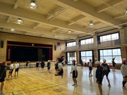 5年体育の様子です。今日は、講堂で「ながなわ」をしました。小グループに分かれて、軽快に飛んで楽しみました。