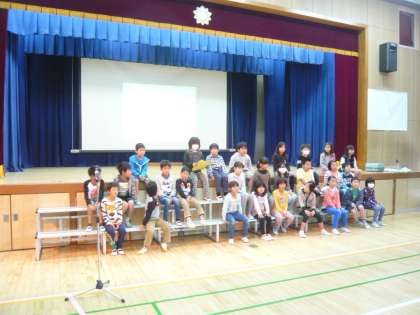 3年生が講堂で学習発表会に向けて活動をしていました。