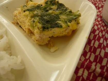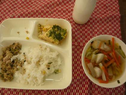 献立は、千草焼き、すまし汁、ツナっ葉いため、ごはん、牛乳でした。