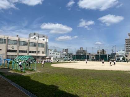 今日も良いお天気です。休み時間は、運動場で思いっきり遊べます。東桃谷小学校は、自慢の広い運動場があります。元気な声、楽しそうな声が、運動場に響き渡っています。