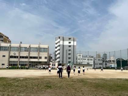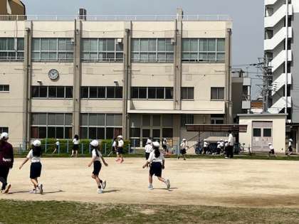 2年の体育の様子です。今日は、運動場を思いっきり走る「おにごっこ」でした。東桃谷小学校の運動場は、とても広いので、走りがいがあります。