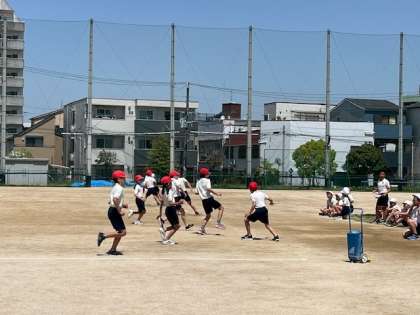4年生の体育の様子です。今日は、青空の下、スポーツテストの「シャトルラン」に取り組みました。自分の力を出し切り頑張っていました。
