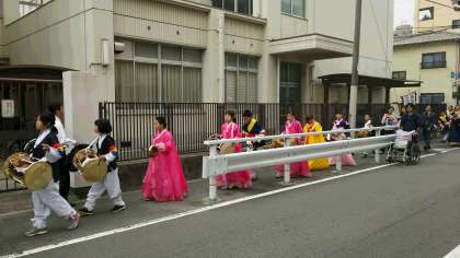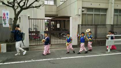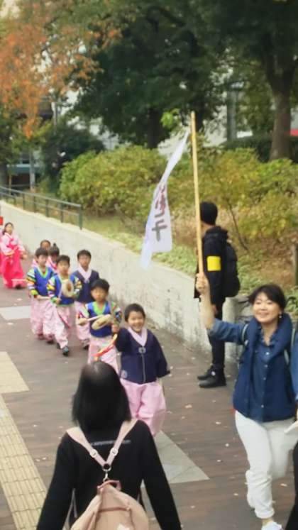 舎利寺小学校から桃谷高校に向けてのパレードが始まりました。